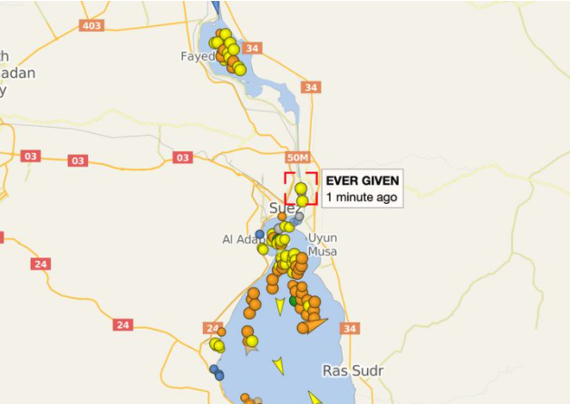 Το γιγαντιαίων διαστάσεων φορτηγό πλοίο «Ever Given» ακινητοποιήθηκε ενώ διέσχιζε τη διώρυγα, σε σημείο που κάνει αδύνατο το πέρασμα οποιουδήποτε άλλου σκάφους. Με μήκος 400 μέτρων, δηλαδή όσο είναι το ύψος του Empire State Building, το «Ever Given», το οποίο εκτελούσε δρομολόγιο από την Κίνα στο Ρότερνταμ της Ολλανδίας, έχει προκαλέσει αδιανόητο μποτιλιάρισμα στην είσοδο της διώρυγας.