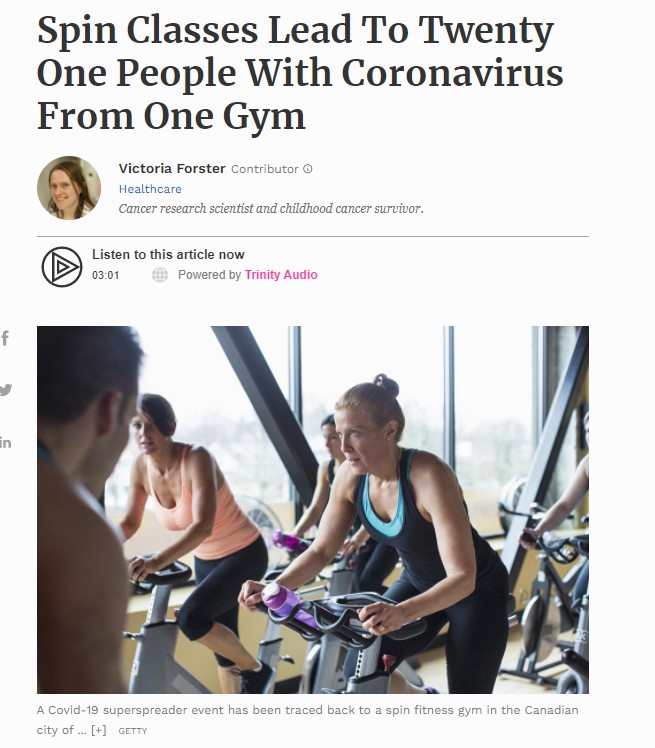 Η συγκεκριμένη είδηση, σύμφωνα με το Forbes, βλέπει το φως της δημοσιότητας την ώρα που στη χώρα γίνονται πολλές συζητήσεις για το εάν τελικά τα γυμναστήρια είναι ασφαλή εν μέσω πανδημίας.