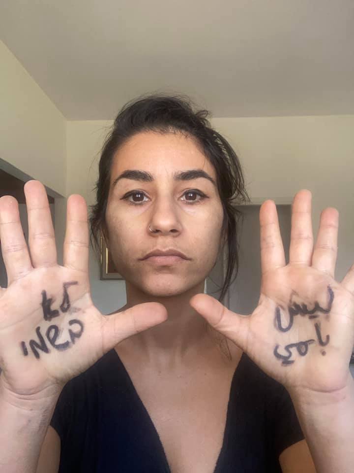 Tο hashtag #NotInMyName, που ξεκίνησε την Πέμπτη το βράδυ στο Facebook, εμφανίζει γυναίκες να δείχνουν την παλάμη τους, στην οποία είναι γραμμένη η εν λόγω φράση στα εβραϊκά, στα αγγλικά και στα αραβικά.