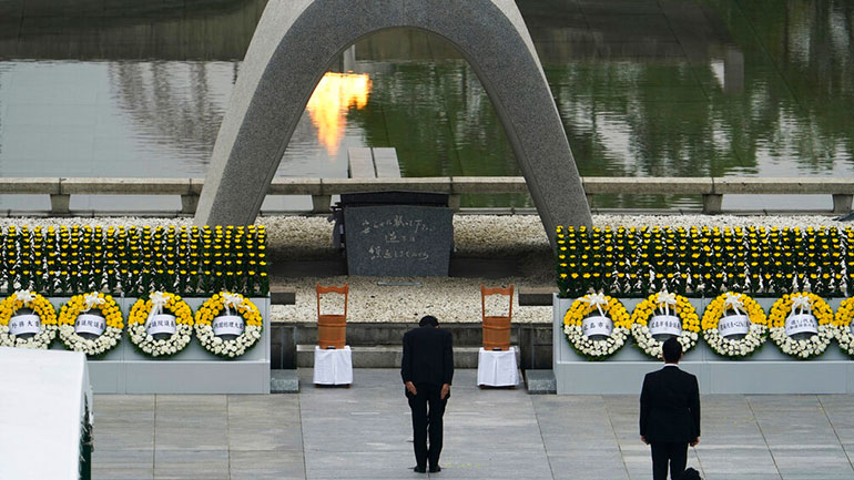 Η σιωπηρή προσευχή άρχισε στις 08:15 (τοπική ώρα· 02:15 ώρα Ελλάδας), ακριβώς την ώρα που έγινε η έκρηξη της ατομικής βόμβας στη Χιροσίμα πριν από 75 χρόνια.