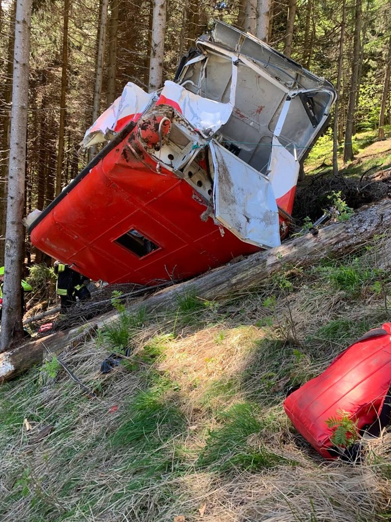 #Verbania ecco la cabina della funivia Stresa-Mottarone sul lago Maggiore caduta poco prima delle 13, bilancio parziale 9 vittime e due bambini molto gravi.#Verbania #FuniviaStresaMottarone#VerbanoCusioOssola #Piemonte pic.twitter.com/cvvvFUP42w