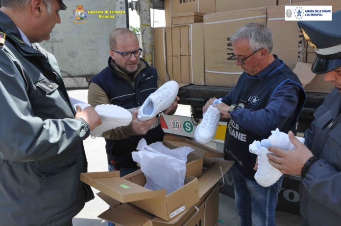 Μόλις το προηγούμενο 24ωρο, η Αστυνομία Οικονομικού Εγκλήματος (Guardia di Finazna), κατέσχεσε ποσότητα μαμούθ μαϊμού προϊόντων αξίας 300.000 ευρώ. Πρόκειται για παπούτσια μάρκας FILA, εμπόρευμα το οποίο εισήλθε στο λιμάνι του Μπρίντιζι από ελληνικό λιμάνι.