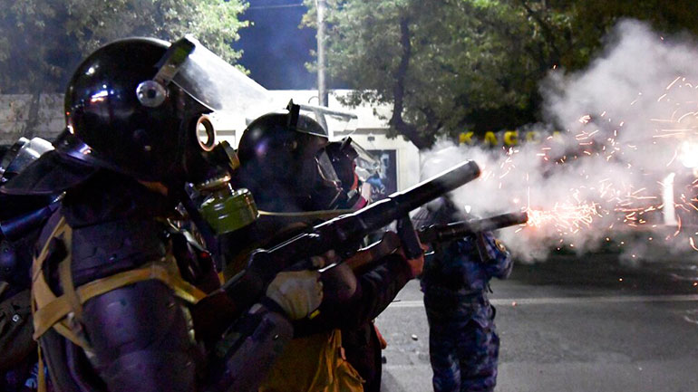 Η αστυνομία διέλυσε τη διαδήλωση αργά χθες Δευτέρα, όμως οι διαδηλωτές επέστρεψαν στην κεντρική πλατεία του Μπισκέκ λίγες ώρες αργότερα και εισέβαλαν στο κτήριο που αποτελεί έδρα του προέδρου και του κοινοβουλίου. Το κτήριο, γνωστό στο Κιργιστάν ως Λευκός Οίκος, πυρπολήθηκε σήμερα το πρωί.