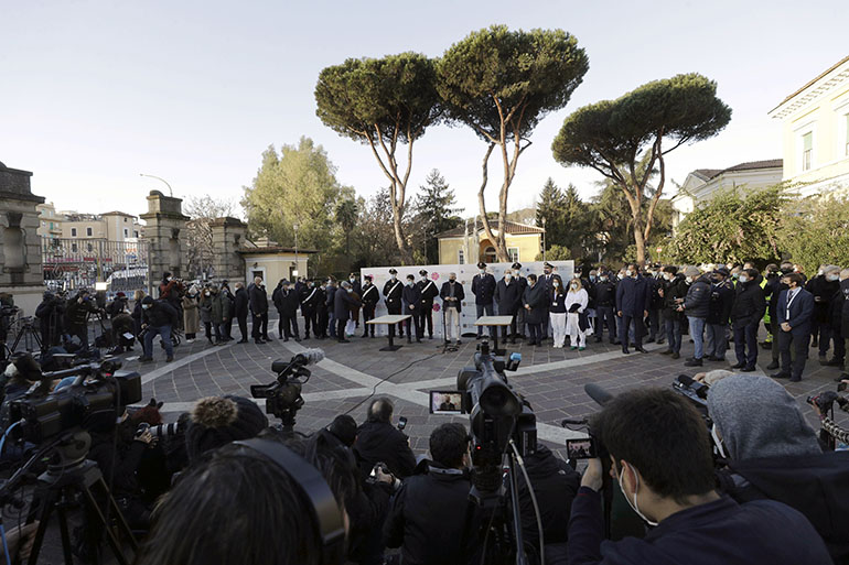 Πρόκειται για μια γιατρό, μια νοσοκόμα και ένα μέλος του βοηθητικού προσωπικού του νοσοκομείου. Εμβολιάσθηκαν, μπροστά στις τηλεοπτικές κάμερες, λίγο μετά τις επτά τοπική ώρα. «Εμβολιασθείτε όλοι, σας το λέω από καρδιάς», δήλωσε η 28χρονη νοσηλεύτρια Κλάουντια Αλιβερνίνι.