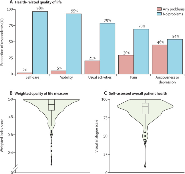 Περίπου το 81% των συμπεριληφθέντων ασθενών θεωρήθηκε από τους παρόχους υγειονομικής περίθαλψης ότι είχε αναρρώσει πλήρως ή «πιθανώς πλήρως» από τη μυοκαρδίτιδα. Ωστόσο, σχεδόν οι μισοί από τους ασθενείς συνέχισαν να αναφέρουν συμπτώματα, συμπεριλαμβανομένου του θωρακικού πόνου. Και μεταξύ των 151 ασθενών το 54% είχε κάποιο μη φυσιολογικό εύρημα στην μαγνητική τομογραφία καρδιάς, όπως πρήξιμο και ουλές.