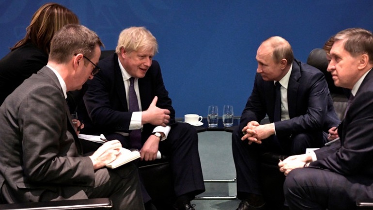Εκπρόσωπος του πρωθυπουργικού γραφείου στη Ντάουνινγκ Στριτ δήλωσε ότι ο πρωθυπουργός Μπόρις Τζόνσον συνάντησε τον πρόεδρο Βλαντίμιρ Πούτιν στο περιθώριο της διάσκεψης για τη Λιβύη στο Βερολίνο, όπου οι δυο ηγέτες συζήτησαν για την ανάγκη να αντιμετωπιστούν θέματα ασφαλείας στη Λιβύη, στη Συρία, στο Ιράκ και στο Ιράν.