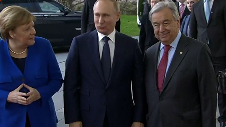 Με την άφιξη των προέδρων της Ρωσίας και της Τουρκίας Βλαντίμιρ Πούτιν και Ταγίπ Ερντογάν ολοκληρώθηκε η άφιξη στην Καγκελαρία των συμμετεχόντων στην Διάσκεψη του Βερολίνου για την Λιβύη. Είχε προηγηθεί διμερής συνάντηση των δύο ηγετών. Τους εκπροσώπους χωρών και οργανισμών που λαμβάνουν μέρος στη σημερινή Σύνοδο υποδέχθηκαν η Καγκελάριος ‘Ανγκελα Μέρκελ και ο Γενικός Γραμματέας των Ηνωμένων Εθνών Αντόνιο Γκουτέρες