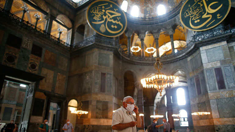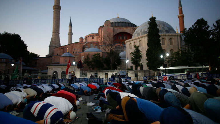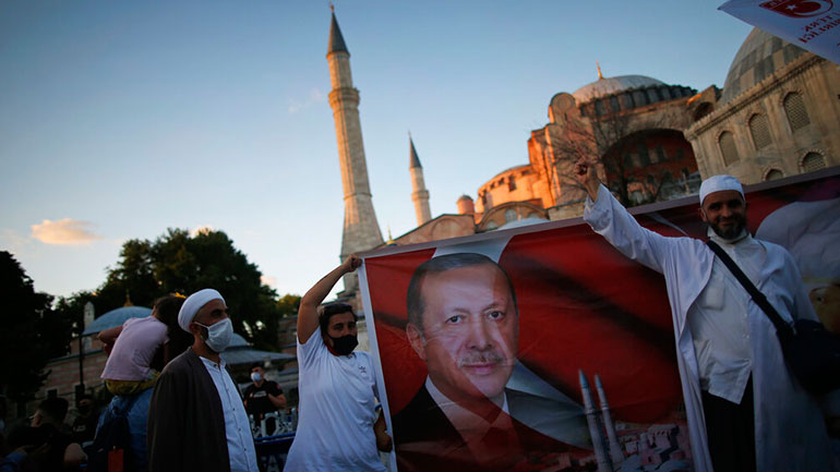 Παρά τις προειδοποιήσεις από πολλές χώρες, ανάμεσά τους η Ελλάδα, η Ρωσία, Γαλλία καθώς και οι ΗΠΑ και η Γαλλία, ο Ερντογάν, προχώρησε στην μετατροπή του μουσείου σε τζαμί, καταργώντας την απόφαση του 1934. Ο Κεμάλ Ατατούρκ σε μία προσπάθεια να εκσυγχρονίσει το τουρκικό κράτος μετέτρεψε την Αγία Σοφία σε μουσείο. Με την σημερινή κίνηση, ο Ερντογάν ακυρώνει για πρώτη φορά μία πράξη του Τούρκου εθνάρχη χωρίς να διχάσει τον τουρκικό λαό. Είναι γνωστό ότι ο Ερντογάν ζει υπό την σκιά του Κεμάλ και γνωρίζει ότι δεν μπορεί να τον αντικαταστήσει. Ωστόσο, η μετατροπή της Αγίας Σοφίας σε τζαμί είναι μία κίνηση που αποβλέπει περισσότερο στη συσπείρωση των Τούρκων γύρω από το κόμμα του, παρά στην πρόκληση της παγκόσμιας κατακραυγής, λένε ειδικοί.