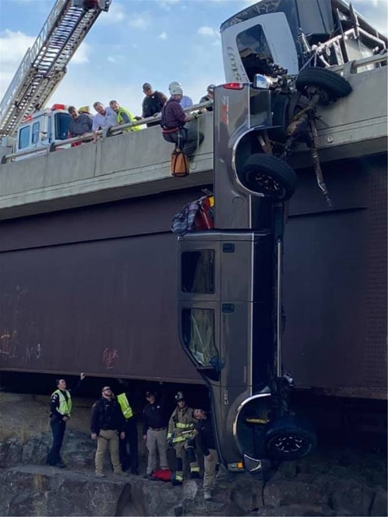 Συγκλονιστικές είναι οι εικόνες από τη διάσωση ενός ζευγαριού μετά από πτώση του οχήματός του από αερογέφυρα στο Αϊντάχο.