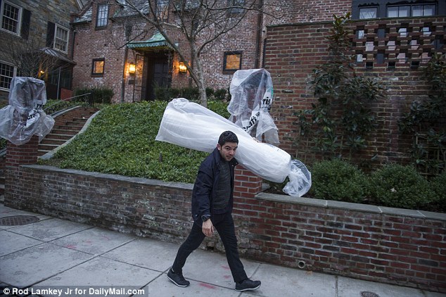 Φορτηγά, μεταφορείς και εκφορτωτικά μηχανήματα κατέκλυσαν τη γειτονιά Kalorama στην Ουάσινγκτον.