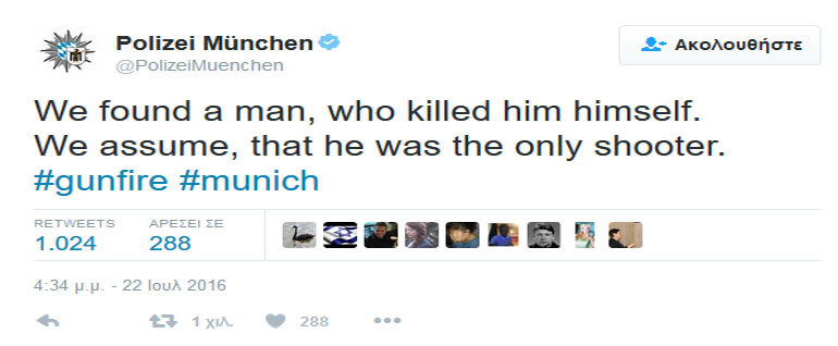 Ανακοίνωση της Αστυνομίας Μονάχου για τον δράστη της επίθεσης