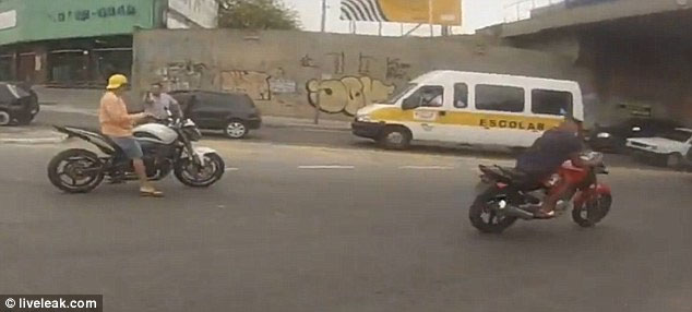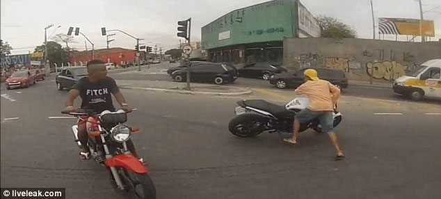 Το περιστατικό κατέγραψε κάμερα που βρισκόταν τοποθετημένη στο κράνος του ιδιοκτήτη της μηχανής. Δεν υπάρχουν πληροφορίες για τον ακριβή χρόνο και μέρος όπου συνέβη.