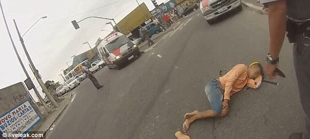 Σοκ προκαλούν οι εικόνες από ληστεία στη Βραζιλία, κατά τη διάρκεια της οποίας ένας νεαρός κλέφτης σωριάζεται σοβαρά τραυματισμένος στο έδαφος, έχοντας δεχθεί τα πυρά ενός αστυνομικού.