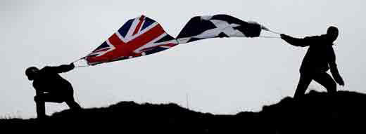Σε δημοσκόπηση που δημοσιεύθηκε χτες στην εφημερίδα Guardian, τα δύο τρίτα των Βρετανών σε Αγγλία, Ουαλία και Βόρεια Ιρλανδία, δηλώνουν κάθετα αντίθετοι στην χρήση της στερλίνας από ένα ανεξάρτητο κράτος της Σκωτίας, ενώ παράλληλα απαιτούν δυναμική στάση απέναντι στους Εθνικιστές.