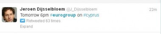 Σύμφωνα με μήνυμα του Προέδρου του Εurogroup κ. Nτάισελμπλουμ...