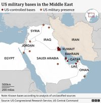 Ο χάρτης με τις αμερικανικές βάσεις στη Μέση Ανατολή (Πηγή φωτό BBC)