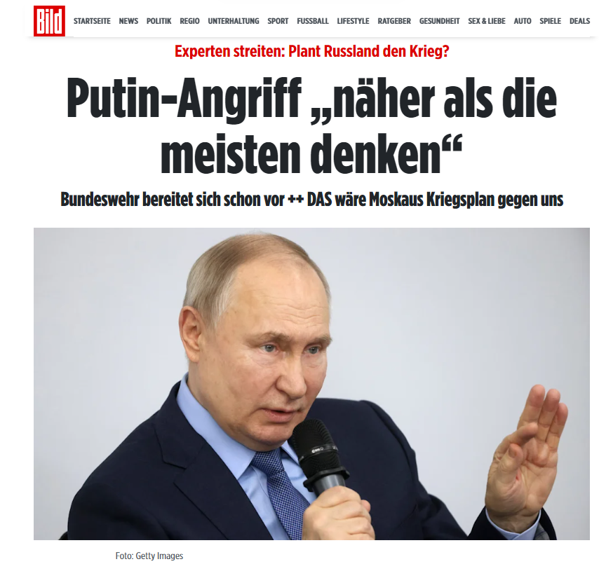 Η Bild υποστηρίζει ότι η Bundeswehr, δηλαδή οι γερμανικές ένοπλες δυνάμεις, προετοιμάζονται για μια επίθεση από τη Μόσχα στην ανατολική πτέρυγα της συμμαχίας, σε Βαλτικές χώρες, Πολωνία, Σλοβακία, Ουγγαρία, Ρουμανία, Βουλγαρία.