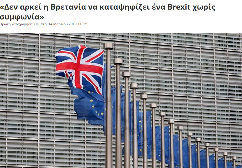 «Ο μεγάλος φόβος των ηγετών των 27 είναι ότι θα εγκρίνουν την παράταση [της διαδικασίας βάσει του Άρθρου 50 της Συνθήκης της Λισαβόνας] η οποία, στην τελική, δεν θα φέρει τίποτε άλλο παρά την αναβολή έως το καλοκαίρι του σκληρού Brexit», της αποχώρησης χωρίς συμφωνία, τόνισε ανώτερος Ευρωπαίος αξιωματούχος.