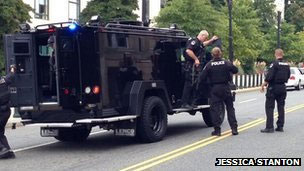 Ειδικότερα, περιπολικά της Αστυνομίας, άνδρες του FBI ακόμα και μέλη των ειδικών δυνάμεων του στρατού απέκλεισαν άμεσα την ευρύτερη περιοχή. O πρόεδρος των Η.Π.Α., Barack Obama, ενημερώθηκε σχεδόν από την πρώτη στιγμή για τις εξελίξεις.