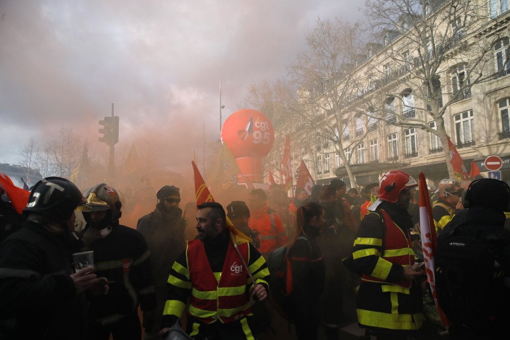 Οι πυροσβέστες με ήχους από τις σφυρίχτρες και τις σειρήνες, κάτω από πολύχρωμο καπνό, και ντυμένοι με τις μπλε στολές τους με τις φθορίζουσες κίτρινες γραμμές, ξεκίνησαν τη διαμαρτυρία τους λίγο μετά τις 2 μ.μ. από την πλατεία Place de la République.