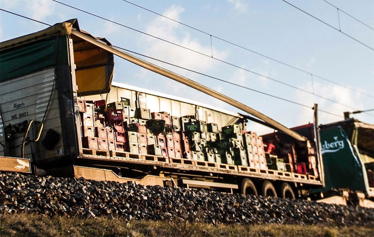 Επιβατική αμαξοστοιχία, η οποία κατευθυνόταν προς την πρωτεύουσα Κοπεγχάγη, χτυπήθηκε από αντικείμενα που έπεσαν από μια εμπορική αμαξοστοιχία.
