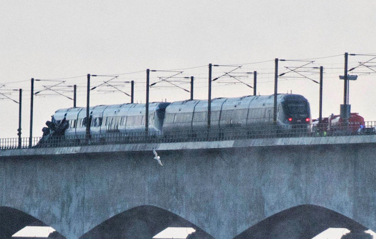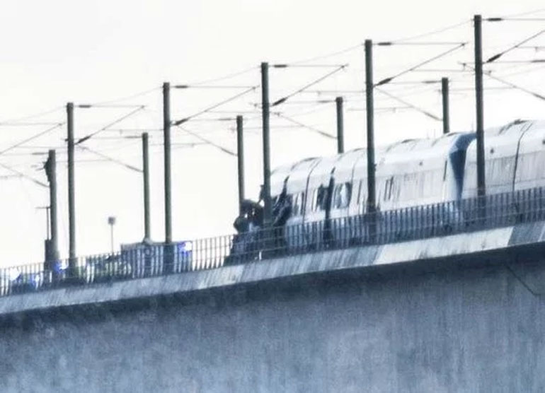 Επιβατική αμαξοστοιχία, η οποία κατευθυνόταν προς την πρωτεύουσα Κοπεγχάγη, χτυπήθηκε από αντικείμενα που έπεσαν από μια εμπορική αμαξοστοιχία.