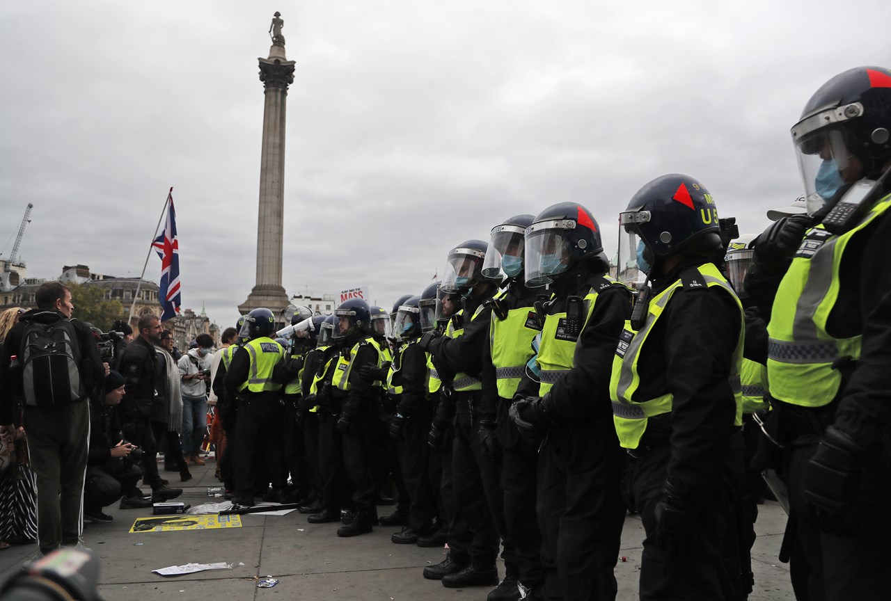 Τα επεισόδια ξέσπασαν ότι οι αστυνομικοί επενέβησαν για να διαλύσουν το πλήθος στην Πλατεία Τραφάλγκαρ, επειδή δεν τηρούνταν οι συστάσεις για τις αποστάσεις και τη χρήση μάσκας.