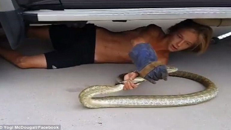 Ο φωτογραφικός φακός τον συνέλαβε στην τελευταία του αποστολή όταν έβγαλε την μπλούζα του και απομάκρυνε έναν πύθωνα…