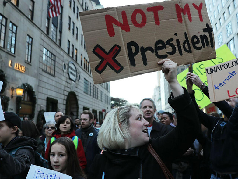 «Δεν υπάρχει βασιλιάς στην Αμερική», ή «Αντίσταση στην Τυραννία», διάβαζε κανείς σε πλακάτ διαδηλωτών στη Νέα Υόρκη, ενώ άλλοι κράδαιναν εικόνες του Ρεπουμπλικάνου με μουστάκι à la Χίτλερ.