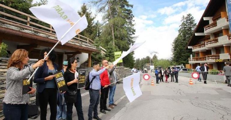 Εξάλλου, μέλη της πρωτοβουλίας «Unite Cyprus» πραγματοποίησαν εκδήλωση έξω από τον χώρο της διάσκεψης στο Κρανς Μοντανά.