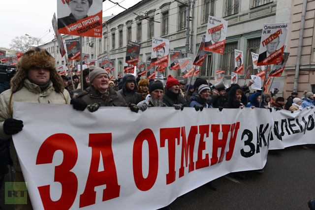 Περίπου 20.000 Ρώσοι διαδήλωσαν σήμερα στη Μόσχα, διαμαρτυρόμενοι κατά του πρόσφατου νόμου που απαγορεύει στους Αμερικανούς τις υιοθεσίες παιδιών από τη Ρωσία.
