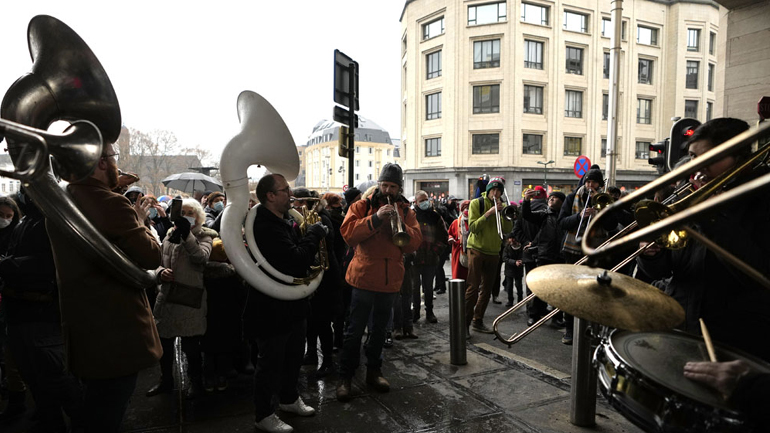 «Όχι σε αυτό το ηλίθιο διάταγμα», «Σε αντίθεση με την οικονομία, ο πολιτισμός μας εμπλουτίζει» και «Χωρίς πολιτισμό, δεν υπάρχει μέλλον», έγραφαν τα πλακάτ που κρατούσαν οι συγκεντρωμένοι. Ορισμένοι φορούσαν αποκριάτικες μάσκες και η ατμόσφαιρα ήταν εορταστική.