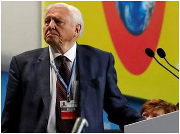 Το ενδεχόμενο κατάρρευσης του πολιτισμού λόγω της καταστροφής της φύσης υποστήριξε ο Βρετανός ιστορικός, συγγραφέας και δημοσιογράφος Sir David Attenborough κατά τη διάρκεια της ομιλίας του στη διάσκεψη εκπροσωπώντας τη «λαϊκή κοινή γνώμη».