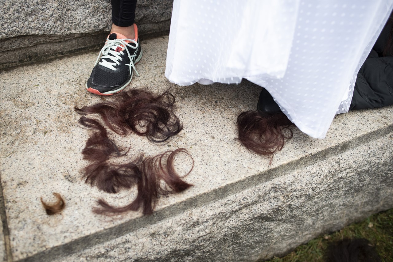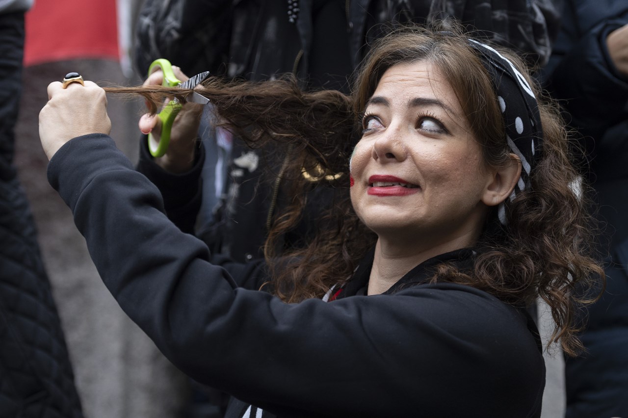 Σε μία συμβολική εκδήλωση διαμαρτυρίας πολλές γυναίκες παίρνουν ένα ψαλίδι και κόβουν τα μαλλιά τους στη μέση του δρόμου. Μία από αυτές είναι η 30χρονη Σιν, που ζει μόνιμα στον Καναδά. «Οι άνθρωποι αγωνίζονται στο Ιράν», λέει. «Αλλά η βία που αντιμετωπίζουν είναι απίστευτη, βάζουν σε κίνδυνο τη ζωή τους. Το τι κάνω εγώ με τα μαλλιά μου δεν είναι τίποτα μπροστά σε αυτά που υπομένουν εκείνοι…».