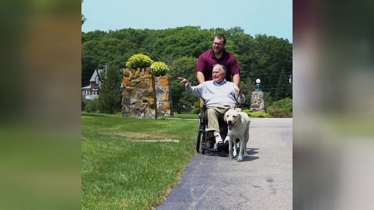 Συγκίνηση προκαλούν οι εικόνες από τον πιστό σκύλο του τέως προέδρου της Αμερικής, Τζορτζ Μπους.
