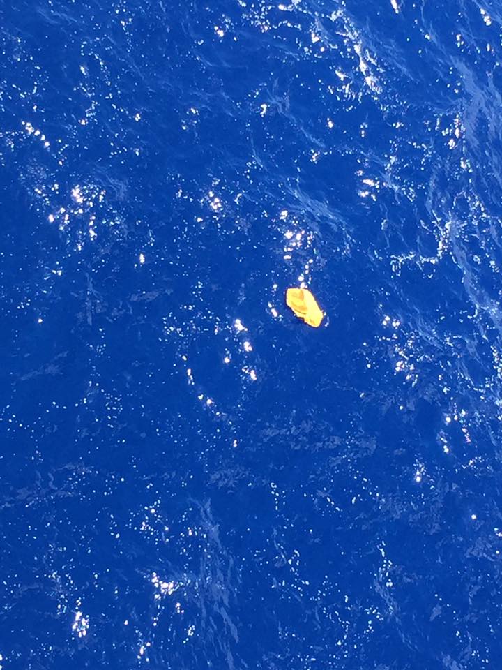 Λίγο αργότερα, ελληνικό C-130 επιβεβαίωσε ότι το αντικείμενο που είχε εντοπιστεί είναι ένα πορτοκαλί σωσίβιο και ότι στο ίδιο σημείο -κάτω από την επιφάνεια της θάλασσας- βρίσκεται ένα ασημί γυαλιστερό αντικείμενο.