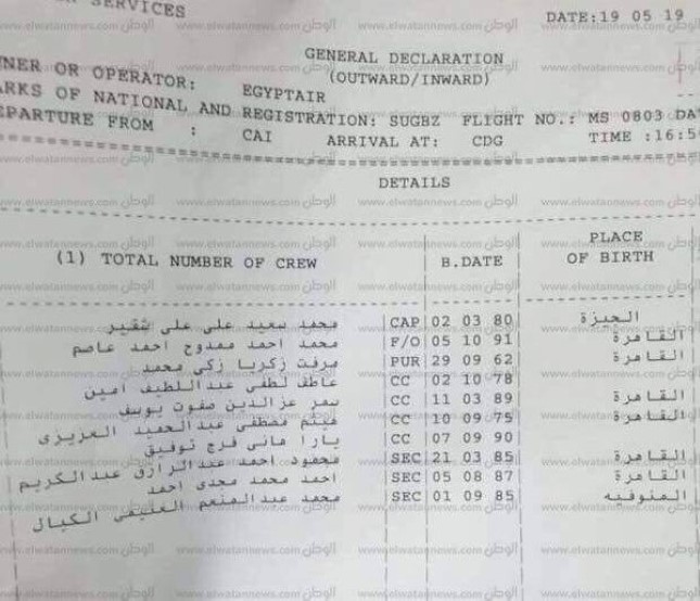 Το αεροπλάνο που εκτελούσε την πτήση πτήση MSR804 Παρίσι-Κάιρο, χάθηκε από τα ραντάρ στις 03.29 τα ξημερώματα της Πέμπτης. Τραγικές φιγούρες αποτελούν οι συγγενείς των επιβαινόντων (56 επιβάτες, μεταξύ των οποίων τρία παιδιά, και δέκα άτομα πλήρωμα), οι οποίοι περιμένουν τις επίσημες ανακοινώσεις για να μάθουν τι απέγιναν τα αγαπημένα τους πρόσωπα.