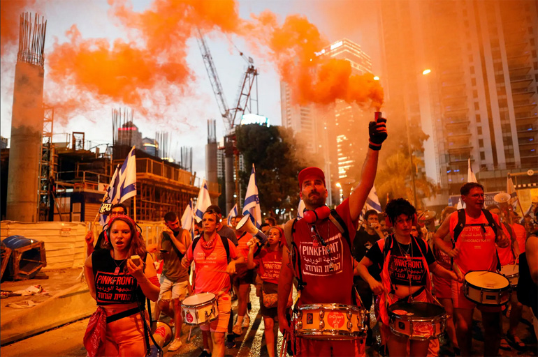 Αυτοί οι φόβοι έχουν πυροδοτήσει 29 συνεχόμενες εβδομάδες μαζικών διαδηλώσεων, οι οποίες κορυφώθηκαν το Σάββατο με δεκάδες χιλιάδες διαδηλωτές να παρελαύνουν στην Ιερουσαλήμ, ορισμένοι από τους οποίους περπατούσαν για μέρες για να φτάσουν εκεί.