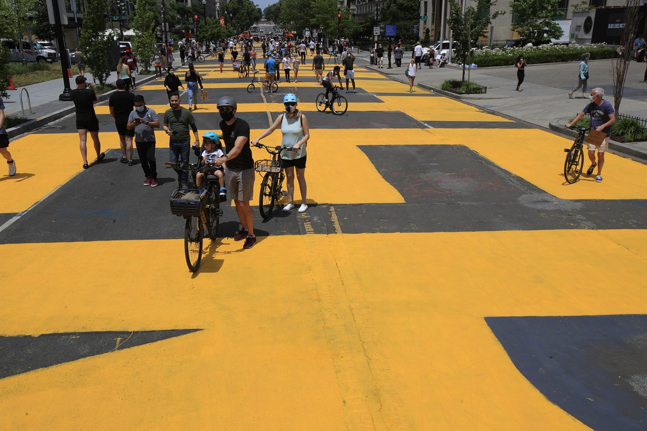 Η τοιχογραφία απεικονίζει το “BLACK LIVES MATTER” με κίτρινα γράμματα σε ένα τμήμα της 16ης οδού που βρίσκεται ακριβώς μπροστά από την Πλατεία Λαφαγιέτ, όπου έλαβαν χώρα πολλές διαμαρτυρίες για τον θάνατο του Τζορτζ Φλόιντ.