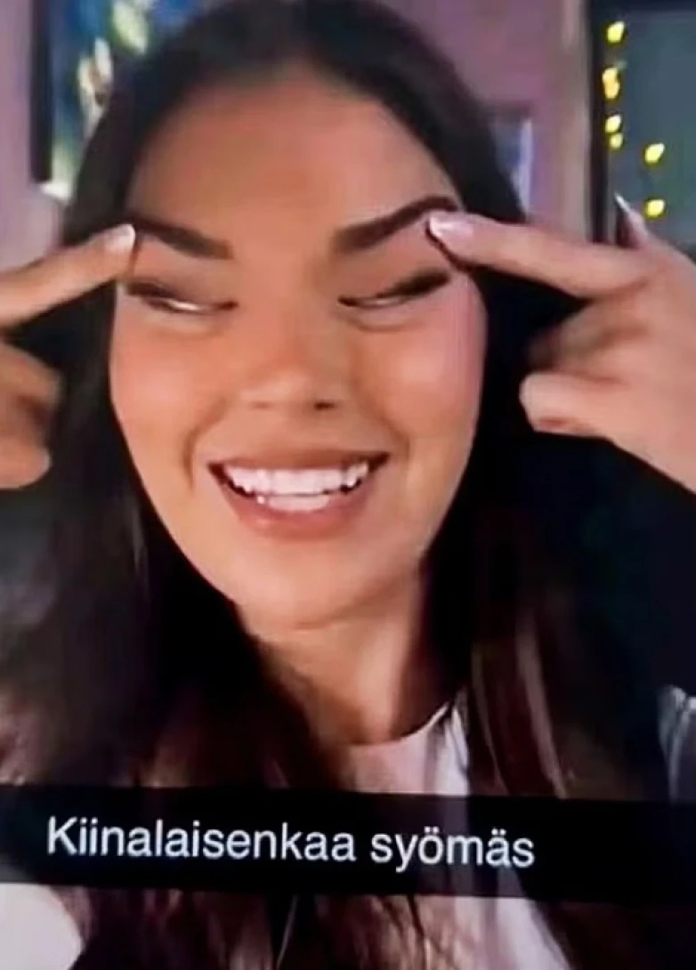 Στη λεζάντα της φωτογραφίας έγραψε στα φινλανδικά «τρώγοντας με έναν Κινέζο». Η ανάρτηση ανέβηκε στην εφαρμογή Jodel.