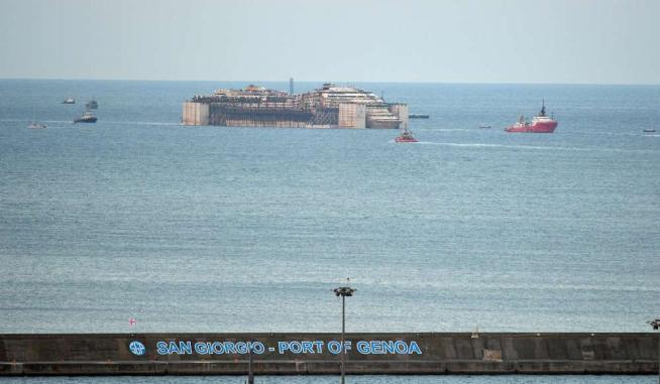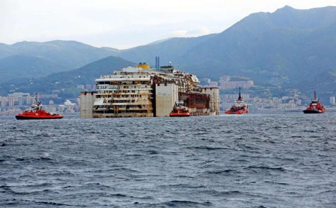 Στο λιμάνι της Γένοβας αγκυροβόλησε το κατεστραμμένο κρουαζιερόπλοιο Costa Concordia, ολοκληρώνοντας το τελευταίο του ταξίδι το οποίο ξεκίνησε την περασμένη Τετάρτη από το νησί Τζίλιο της Τοσκάνης, όπου είχε ναυαγήσει στις 11 Ιανουαρίου του 2012.