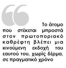 Όπως κάθε καθρέφτης που… σέβεται τον εαυτό του, το είδωλο που «φιλοξενεί» στην επιφάνειά του ακολουθεί συνεχώς τον άνθρωπο που στέκεται απέναντι, προσφέροντάς του ωστόσο τη μοναδική εμπειρία να παρατηρεί τις αλλαγές που συντελούνται στο εσωτερικό του σώματός του κατά τη διάρκεια της κίνησης.