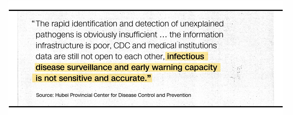 «Ήταν ξεκάθαρο ότι έκαναν λάθη, και όχι μόνο λάθη που γίνονται όταν αντιμετωπίζεις έναν νέο ιό, αλλά και γραφειοκρατικά και πολιτικά υποκινούμενα λάθη στον τρόπο με τον οποίο αντιμετώπισαν την επιδημία» σχολίασε ο Γιανζόνγκ Χουάνγκ του Council on Foreign Affairs.
