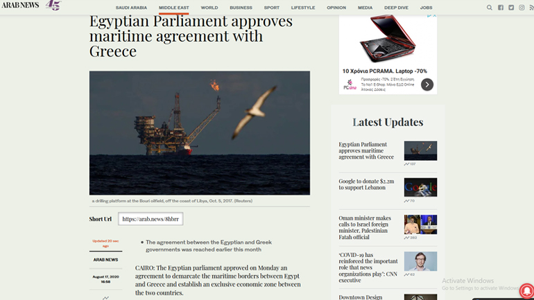 Στην Ελλάδα, διπλωμάτες σύμφωνα με το ίδιο μέσο, δήλωσαν ότι η συμφωνία ακύρωσε αποτελεσματικά μια συμφωνία μεταξύ της Τουρκίας και της κυβέρνησης της Λιβύης που εδρεύει στην Τρίπολη. Ο Αιγύπτιος υπουργός Εξωτερικών Sameh Shoukry είπε προηγουμένως ότι η περιοχή περιέχει πολλά υποσχόμενα αποθέματα πετρελαίου και φυσικού αερίου. «Αυτή η συμφωνία επιτρέπει και στις δύο χώρες να προχωρήσουν στη μεγιστοποίηση της αξιοποίησης των διαθέσιμων πόρων στην αποκλειστική οικονομική ζώνη, ιδιαίτερα ελπιδοφόρα αποθέματα πετρελαίου και φυσικού αερίου», δήλωσε ο Shoukry νωρίτερα, σύμφωνα με το arabnews.com.
