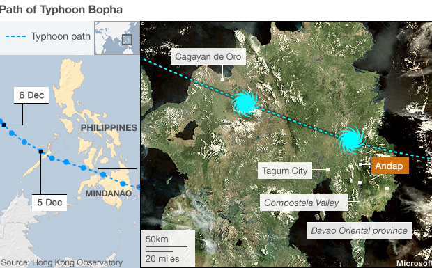 Στους 475 ανέρχονται πλέον οι άνθρωποι που έχουν χάσει τη ζωή τους, 411 αγνοούνται και 300 είναι τραυματίες μετά το πέρασμα του τυφώνα «Bopha» από το νότιο και δυτικό τμήμα των Φιλιππινών, μετέδωσε το βρετανικό τηλεοπτικό δίκτυο BBC.