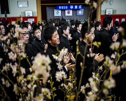 Επιμνημόσυνη δέηση πραγματοποιήθηκε το Σάββατο σε όλα τα δημόσια γυμνάσια της επαρχίας, με τους μαθητές να τιμούν τους τελειόφοιτους που έχασαν τη ζωή τους την ημέρα της αποφοίτησής τους. Η ιστορία ενός σχολείου στην επαρχία Μιγιάγκι, το οποίο παρασύρθηκε από τα ορμητικά νερά του τσουνάμι, την ώρα που βρισκόταν σε εξέλιξη η τελετή αποφοίτησης, προκαλώντας τον θάνατο δεκάδων μαθητών, είχε κάνει τότε τον γύρο του κόσμου.