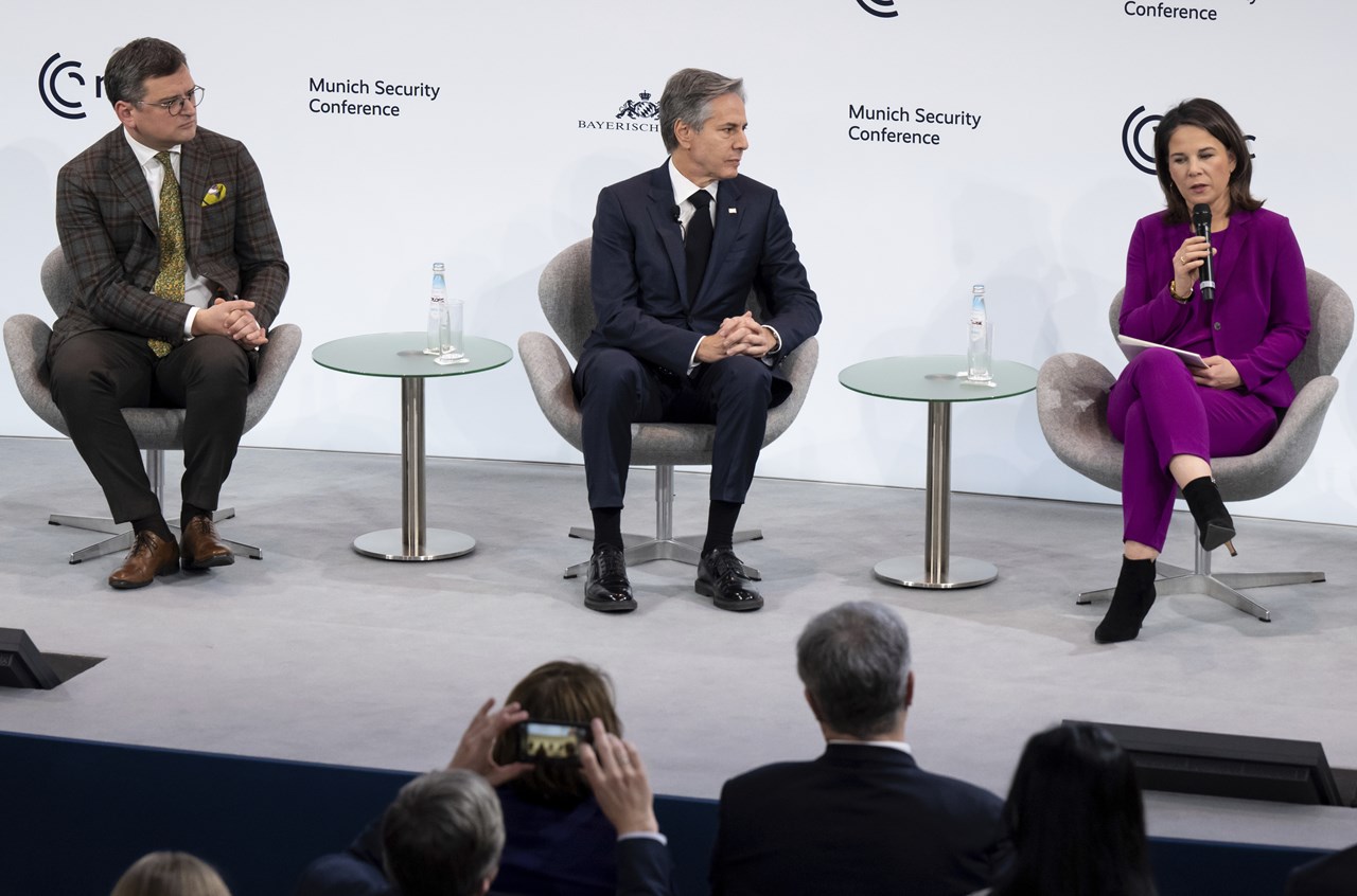 «Οι πρώτοι μήνες ήταν δύσκολοι. Κληθήκαμε να λάβουμε αποφάσεις που δεν είχαμε σκεφτεί ποτέ. Το πλαίσιό μας όμως είναι πάντα η προστασία του διεθνούς δικαίου – και αυτό περιλαμβάνει και την παράδοση όπλων», δήλωσε η κ. Μπέρμποκ, σε συζήτηση – πάνελ για την Ουκρανία στο πλαίσιο της Διάσκεψης του Μονάχου για την Ασφάλεια. «Αν δεν αποφασίζαμε να στηρίξουμε την Ουκρανία, θα είχαμε παντού Μπούτσα και Μαριούπολη», είπε χαρακτηριστικά η υπουργός και τόνισε ότι «δεν μπορούμε να φέρουμε την ειρήνη, αλλά σώζουμε ζωές και θα συνεχίσουμε μέχρις ότου επανέλθει η ειρήνη και η ασφάλεια στην Ουκρανία». Απαντώντας σε ερώτηση σχετικά με το τι σημαίνει ειρήνη για αυτόν τον πόλεμο, η Γερμανίδα υπουργός επισήμανε ότι, αν δεχτούμε η Ρωσία να πάρει ένα τμήμα της Κριμαίας, αυτό θα σήμαινε το τέλος του διεθνούς δικαίου και της παγκόσμιας τάξης, το τέλος της Χάρτας των Ηνωμένων Εθνών. «Να μην ξεχνάμε ότι υπάρχει ένας επιτιθέμενος και ένα θύμα. Αν αποσύρει τα στρατεύματά της η Ρωσία, ο πόλεμος τελείωσε. Αν η Ουκρανία σταματήσει να πολεμά, τελείωσε η Ουκρανία», δήλωσε από την πλευρά του ο κ. Μπλίνκεν και πρόσθεσε ότι «όλοι έχουμε συμφέρον από μια δίκαιη και βιώσιμη ειρήνη», καθώς το αντίθετο θα είναι σε βάρος των συμφερόντων όλων στον κόσμο. Θα έχουμε ανοίξει το Κουτί της Πανδώρας για έναν κόσμο με διενέξεις, προειδοποίησε και ανέφερε ότι πρέπει να εξασφαλιστεί ότι η Ρωσία «δεν θα επαναλάβει την άσκηση». Αναφερόμενος στη συνοχή της Συμμαχίας, η οποία όπως είπε ενισχύθηκε μετά τη ρωσική εισβολή στην Ουκρανία, ο αμερικανός υπουργός είπε ότι «κανείς στον κόσμο δεν έχει κάνει περισσότερα από τον Πούτιν για να ενισχύσει το ΝΑΤΟ». Εξέφρασε δε την πεποίθηση ότι η Ουκρανία θα κερδίσει τον πόλεμο, διότι «οι Ουκρανοί πολεμούν για τη χώρα τους, το μέλλον τους και τα σπίτια τους, ενώ οι Ρώσοι όχι