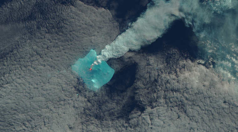 Μοναδικές εικόνες από την έκρηξη ηφαιστείου στον νότιο Ατλαντικό Ωκεανό, η οποία συνέβη στις 24 Απριλίου και την 1η Μαΐου, δημοσίευσε η NASA.
