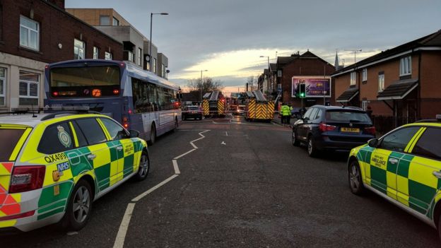 Η καφετέρια βρίσκεται στο Ροτσντέιλ και στο σημείο έχουν σπεύσει ισχυρές δυνάμεις της πυροσβεστικής και της αστυνομίας, καθώς και ασθενοφόρα.