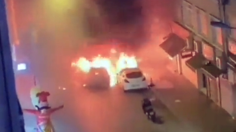 Οι φλόγες από τη φωτιά που ξέσπασε αρχικά σε ένα αυτοκίνητο στη συνοικία Φατίχ της Κωνσταντινούπολης επεκτάθηκαν και σε άλλα σταθμευμένα οχήματα, με τους πυροσβέστες να δίνουν μάχη για να σβήσουν τις φωτιές.